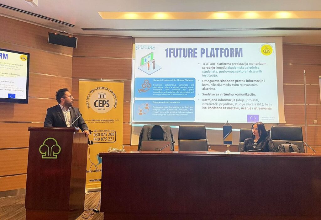π Today, the workshop “1FUTURE Platform β Link Between Business and Academia for a Sustainable Future” took place at the Chamber of Commerce of the Federation of Bosnia and Herzegovina. It was organized by University College CEPS – Center for Business Studies, the Privredna/Gospodarska komora Federacije Bosne i Hercegovine, the University of Tuzla, and the AZUR – Asocijacija za upravljanje rizicima.
